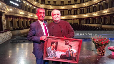 APA-nın yerli bürosu xəbər verir ki, mükafatı ona ittifaqın sədri, “Ad günü” filmindəki tərəf müqabili, Xalq artisti Hacı İsmayılov Gürcüstanın Şota Rustaveli adına Milli Teatrında təqdim edib.