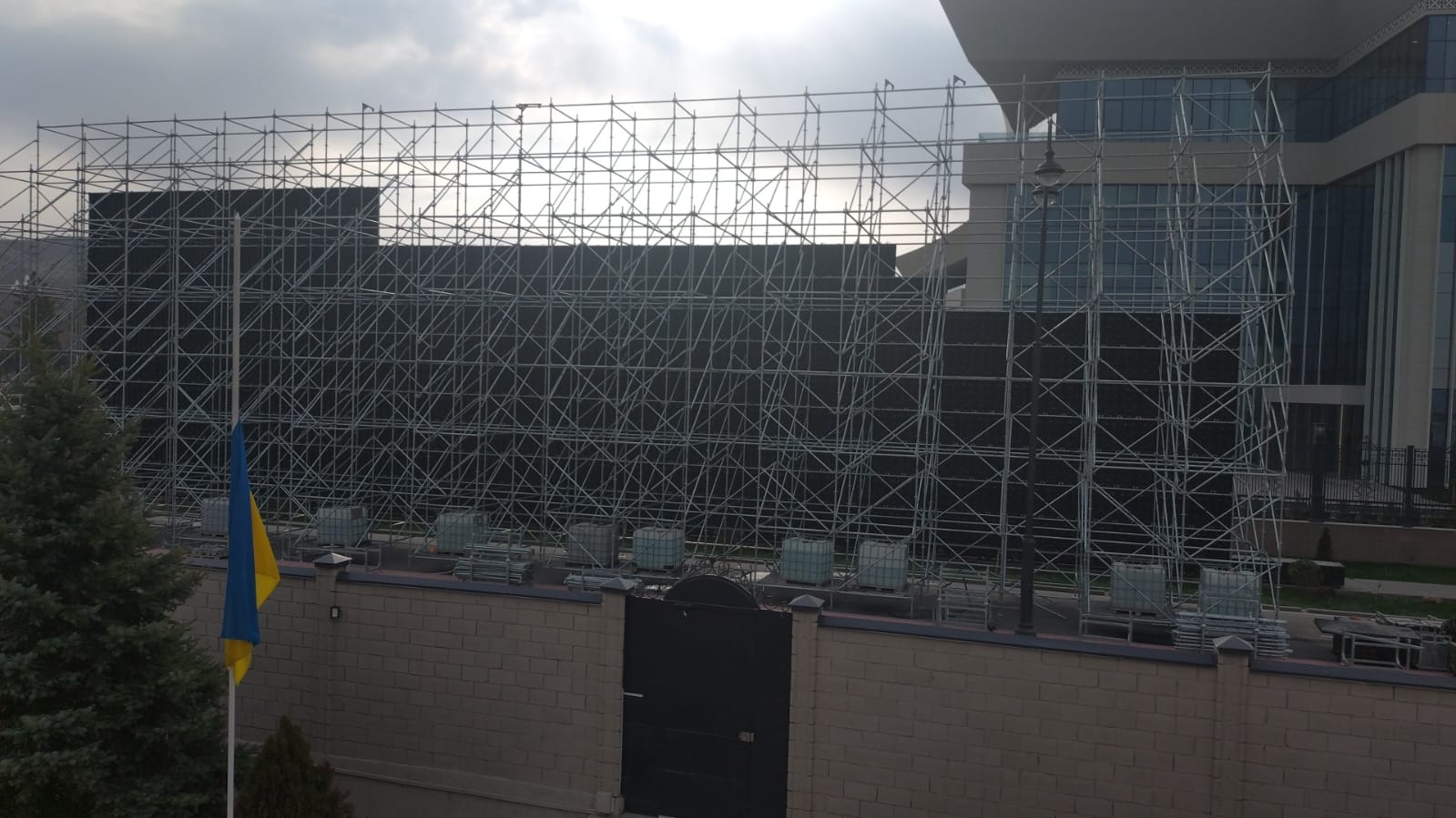 İddialara görə, ekranın quraşdırılmasına səbəb Putinin səfəri zamanı Ukrayna səfirliyinin binasını gizlətmək olub. Belə ki, Ukraynanın diplomatik nümayəndəliyi iqamətgahın yaxınlığında yerləşir.