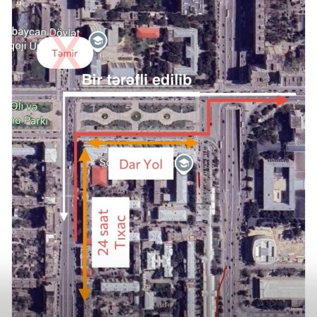 Tribuna.az yazır ki, bu barədə ictimai fəali Haldun Novruzzadə sosial şəbəkə hesabında yazıb. O bildirib ki, Koroğlu Rəhimovdan gələn yol Müəllimlər İnstitutunun qabağında 1 tərəfli yola çevrilib ki, Koroğlu Rəhimovun tıxacı azalsın, amma bir tərəfdən də Həsən Əliyevdən gələn avtomobilləri salıblar dar küçəyə: