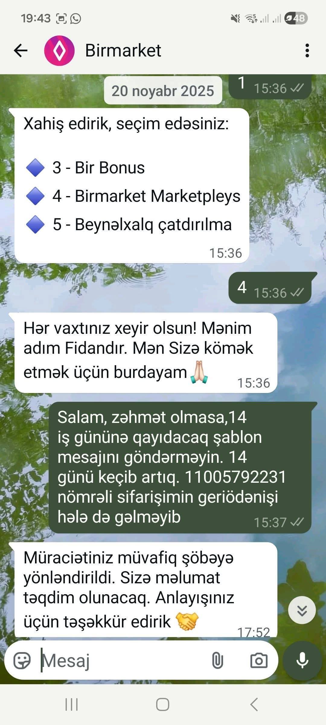 "Bir aydan çoxdur ki, geri qaytarılan malın pulunu ala bilmirəm. Dəfələrlə zəng etmişəm, mesaj yazmışam... amma xeyri yoxdur.